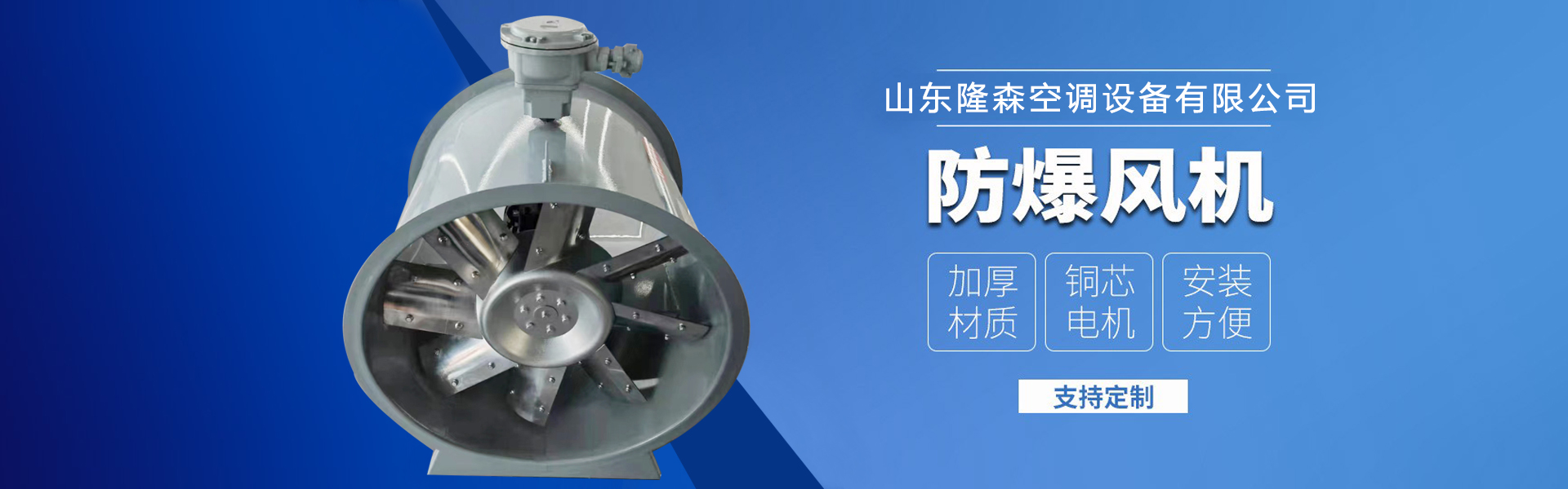 山東隆森空調設備有限公司座落于素有“九達天衢、神京門戶”美譽之稱的美麗德州,注冊資金1000萬,公司成立于2002年前身為山東明通通風空調設備加工廠。從事中央空調系統設備、通風設備、防排煙設備、玻璃鋼產品的制造、銷售、安裝及研發于一體的現代化企業。山東瀧森空調設備有限公司生產的產品主要有:排煙風機、消防排煙風機、離心風機、 新風換氣機、新風機組、凈化空調機組、醫用空調組合機組、螺桿機組、風冷機組、醫用凈化空調機組、吊頂式機組、轉輪式新風換氣機機組、風機盤管、排煙風機箱、混流風機、排煙防火閥......
