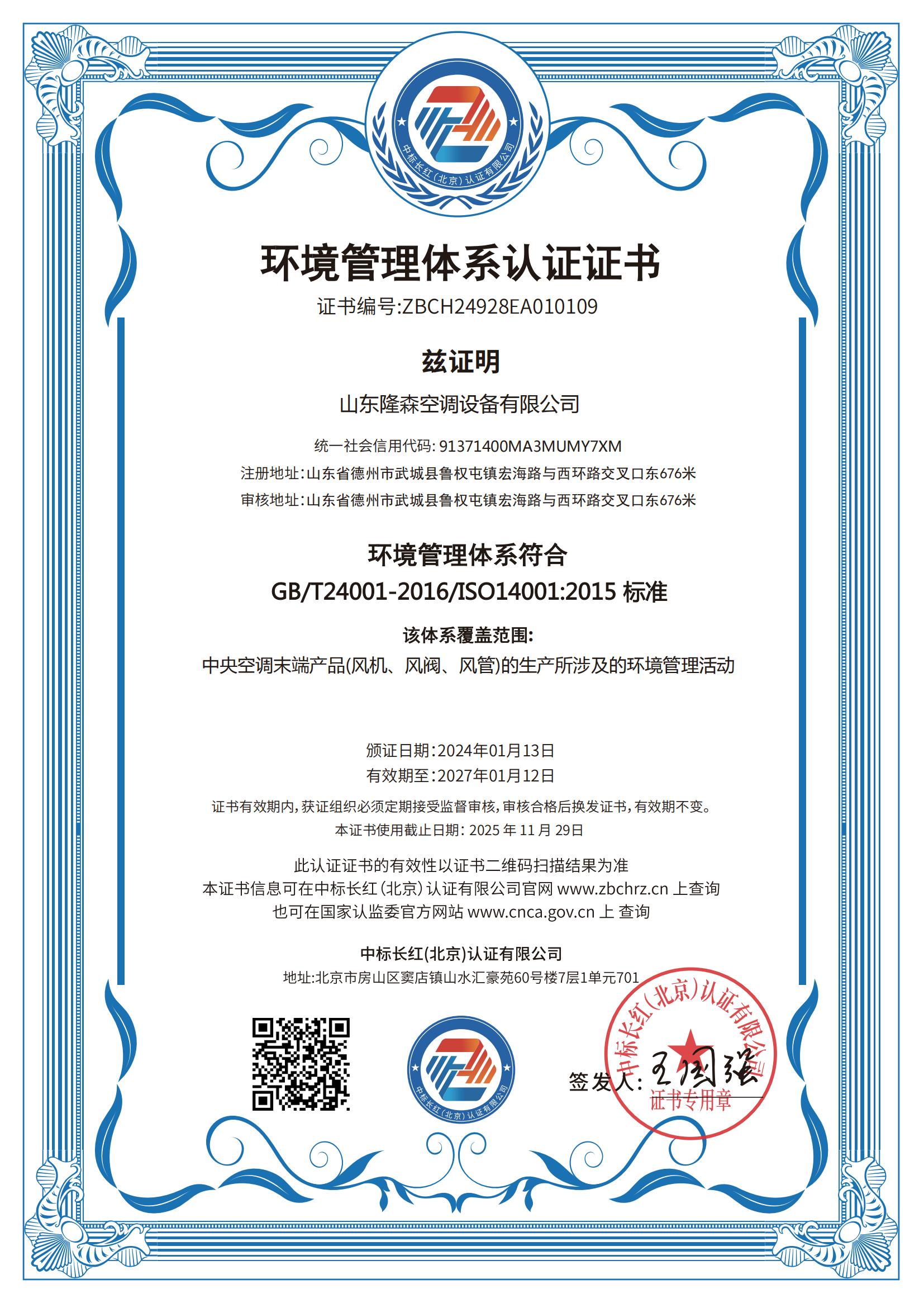 • 環境管理體系證證書