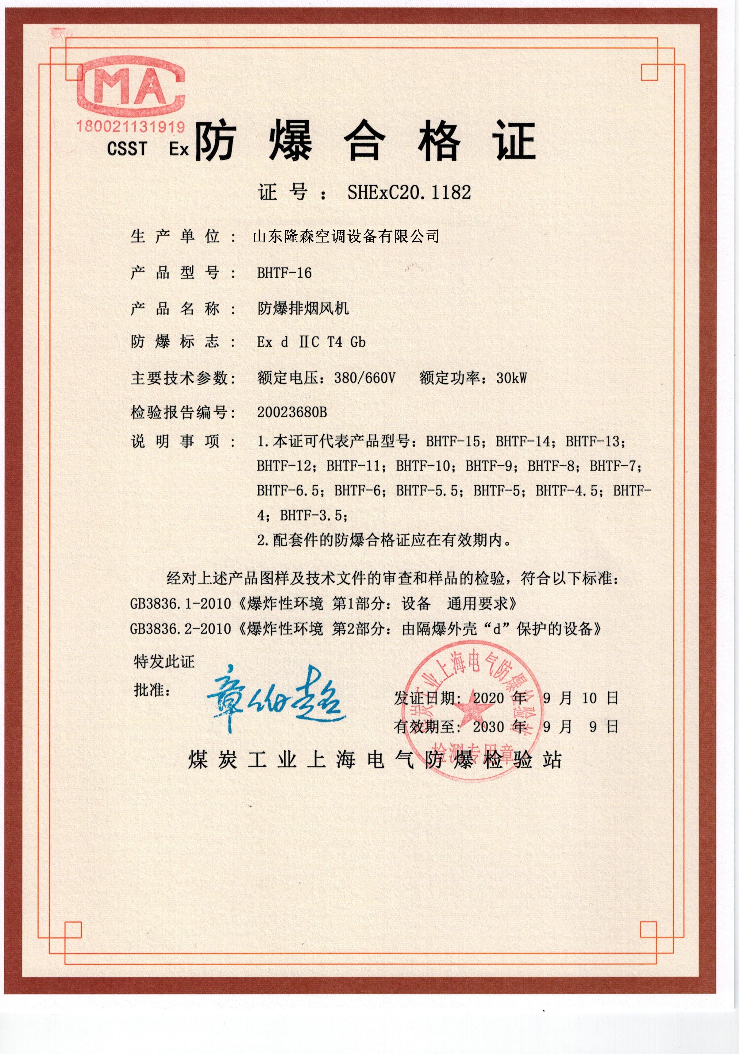 • 防爆排煙風機合格證